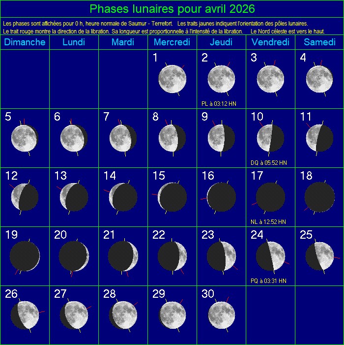 7 avr. 2026 09:32 Lune à l’apogée (distance géoc. = 404970 km)